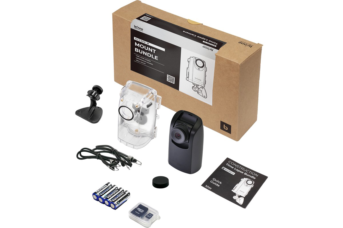 Set up the camera with ease in bright conditions and confirm your framing without distracting screen glare, thanks to the TLC300’s crystal-clear IPS LCD panel. The newly updated "Brinno" user interface enables quicker setup and smoother shooting. BCC300 includes everything you need to get started: an IPX4 weather-resistant housing, a wall mount, and 2 bungee cords.
