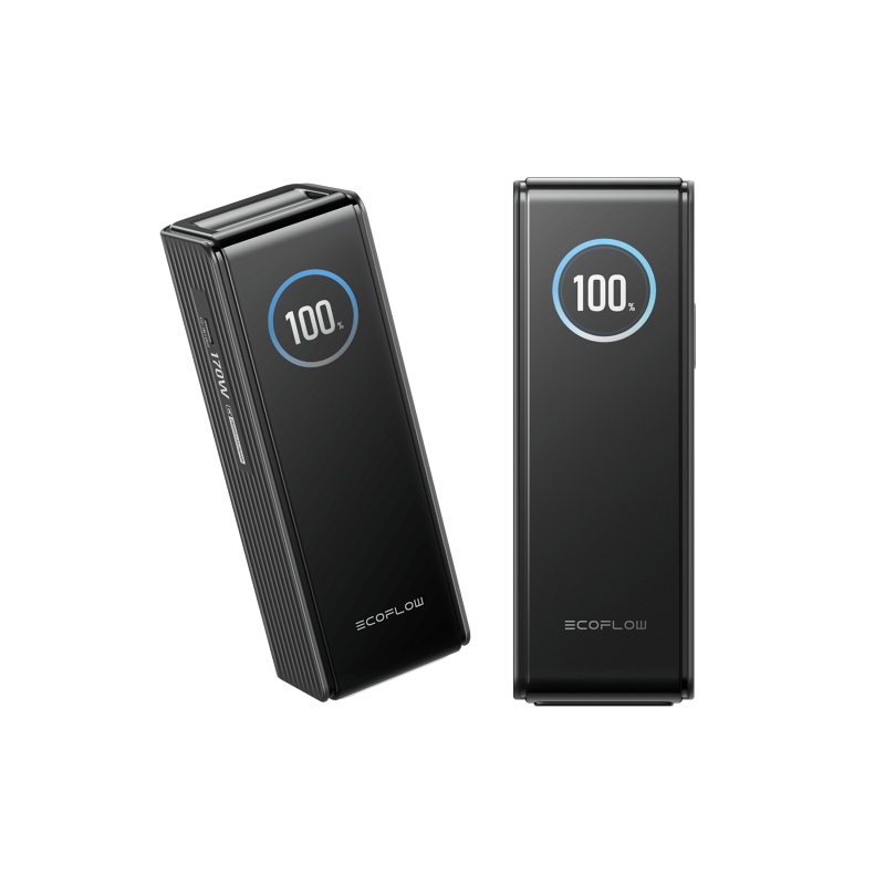EcoFlow Rapid Power Bank (25,000mAh, 170W) is a high-performance fast-charging power bank designed for powering multiple devices at once. With up to 170W simultaneous output and 140W single-port charging, it supports laptops, tablets, smartphones, and other modern USB-C devices. The 25,000mAh capacity provides reliable energy for remote work, travel, or daily use, while the smart TFT display offers clear, real-time charging information. Air-travel-friendly and built for heavy-duty use, this power bank ensures fast recharging and long-term performance wherever you go.