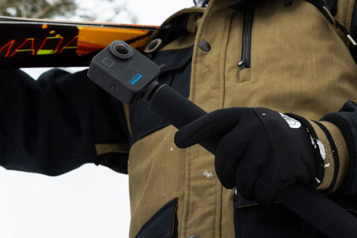 Capture amazing new perspectives from aerial shots that look like they were recorded by a drone to above-the-action drop-ins where the pole completely vanishes from your 360 footage. Stretching up to an incredible 9ft (2.7m) and shrinking down to a compact 15.5in (39cm), this premium carbon fiber extension pole that gives you a greater range of viewpoints—whether you’re snowboarding or capturing the scene above a concert.