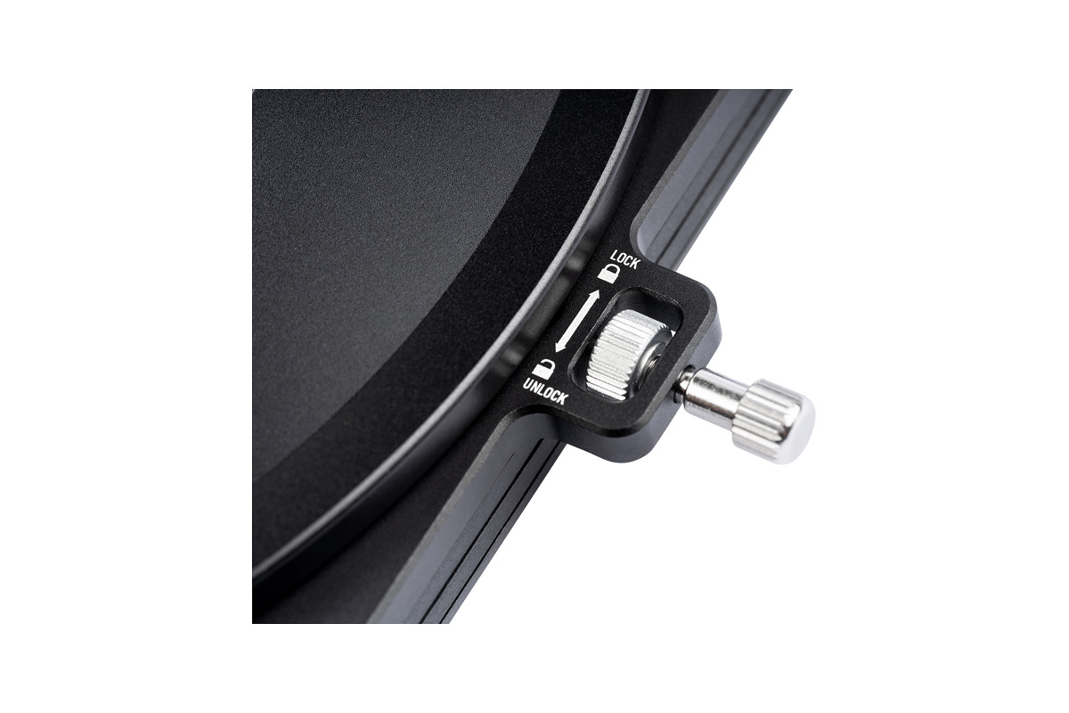 The advanced NiSi S6 filter holder is made of aluminum alloy and can accommodate up to three filters; Two 150 mm square filters (2 mm thick) and a supplied circular polarizing Landscape filter which is placed in a special compartment that allows it to be rotated 360 degrees with a couple of small, easily accessible exterior wheels. In this way, you can quickly and easily get the desired rotation of the polarizating filter without having to detach the holder.